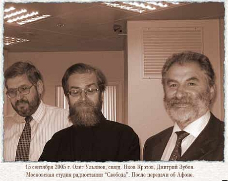 С христианской точки зренияСвятая гора АфонВедущий Яков Кротов Яков Кротов: Тема нашей программы посвящена святой горе Афон. У нас в гостях историки, сотрудник Музея имени преподобного Андрея Рублева (как ни странно звучит такое сочетание, имени преподобного) Олег Германович Ульянов и автор двух книг об Афоне Дмитрий Васильевич Зубов.
