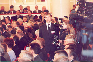 ВыборыМихаил Соколов: Третий съезд движения "Единство" на втором часу работы, лишь при семи голосовавших "против", дружно поддержал предложение своего лидера Сергея Шойгу объединиться с "Отечеством" Юрия Лужкова в одну партию. А через пару часов съезд Союза "Отечества" и "Единства" принял в ряды этой организации движение "Вся Россия" президента Татарстана Минтимера Шаймиева и санкт-петербургского губернатора Владимира Яковлева. Тройственный союз 1 декабря преобразовывается в единую центристскую партию власти.