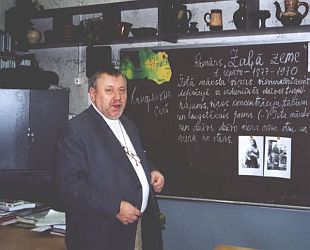 Мумин Шакиров: Открытый урок ведет учитель истории и русской литературы Юрис Соколов, педагог с 30 летним стажем, коренной житель Латвии.